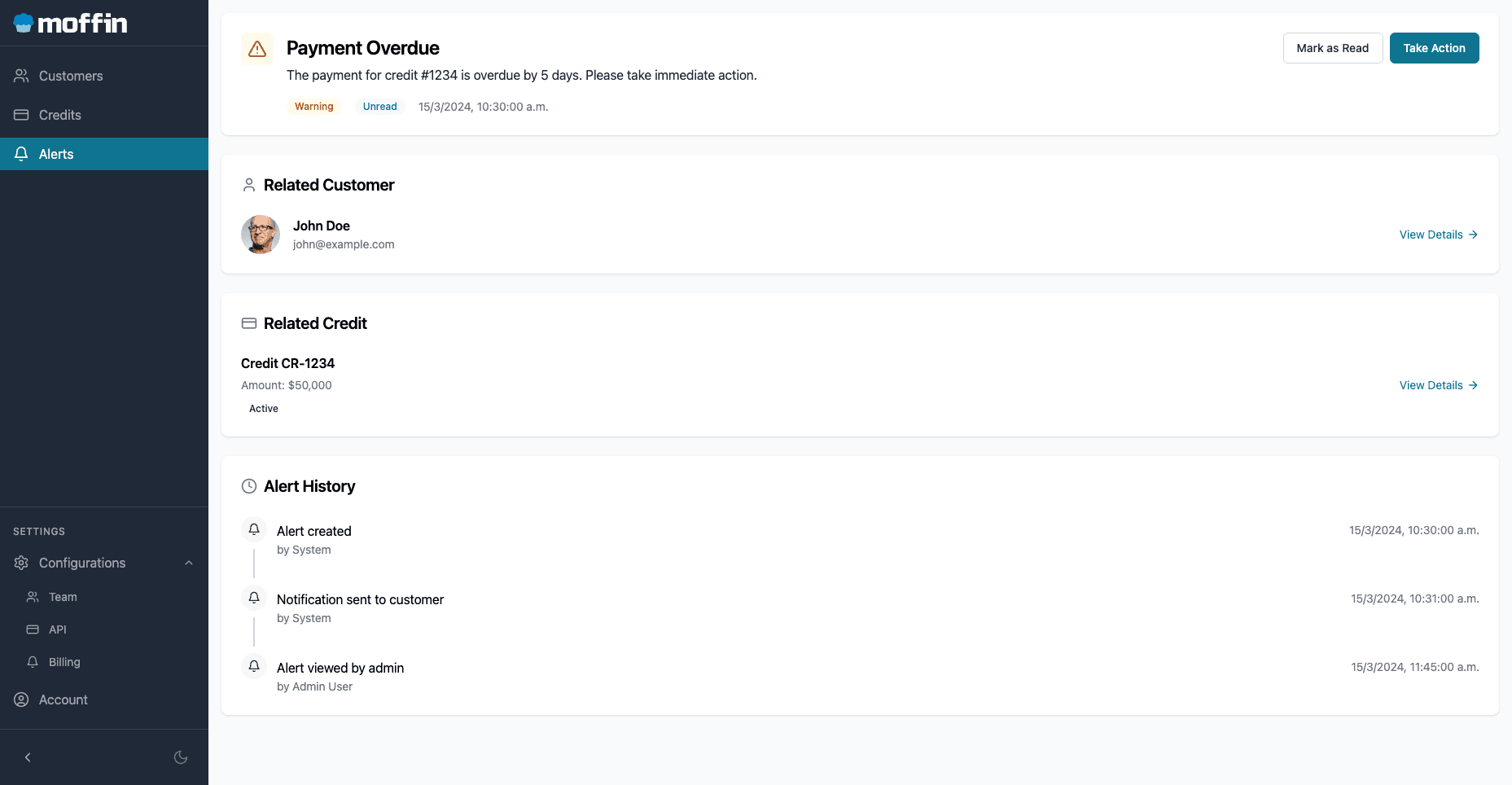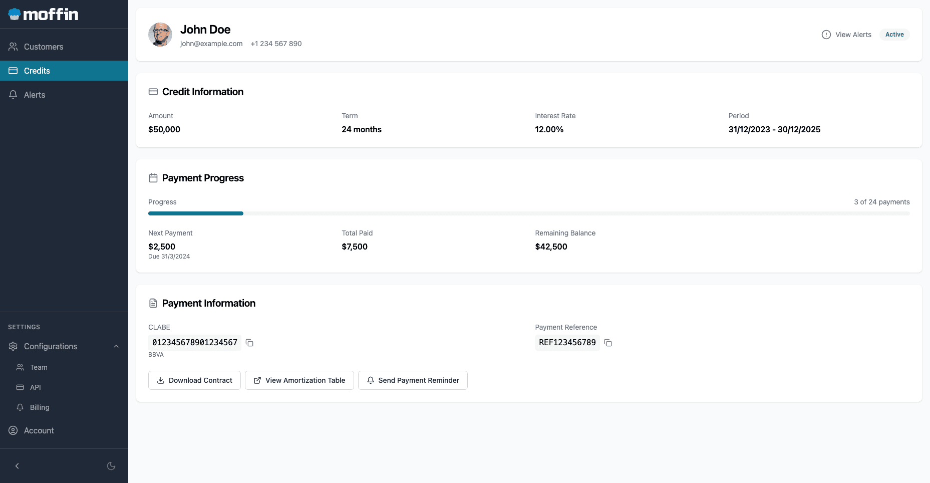 Gestión del cíclo de vida de los créditos de tus clientes.